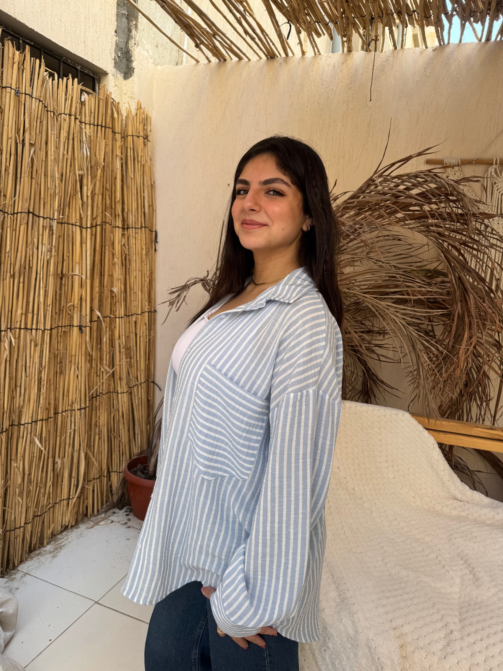 Strip baby blue shirt